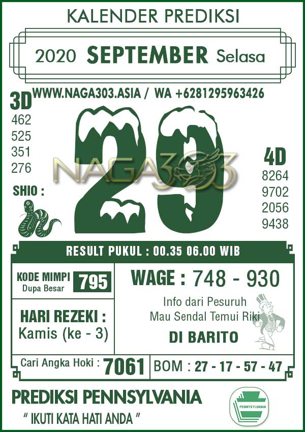 Prediksi Pennsylvania Pools Selasa 29 September 2020 | Web Toto Naga303