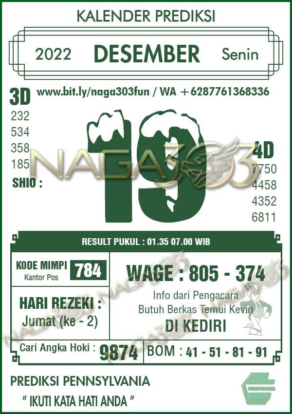 Prediksi Pennsylvania Pools Senin 19 Desember 2022