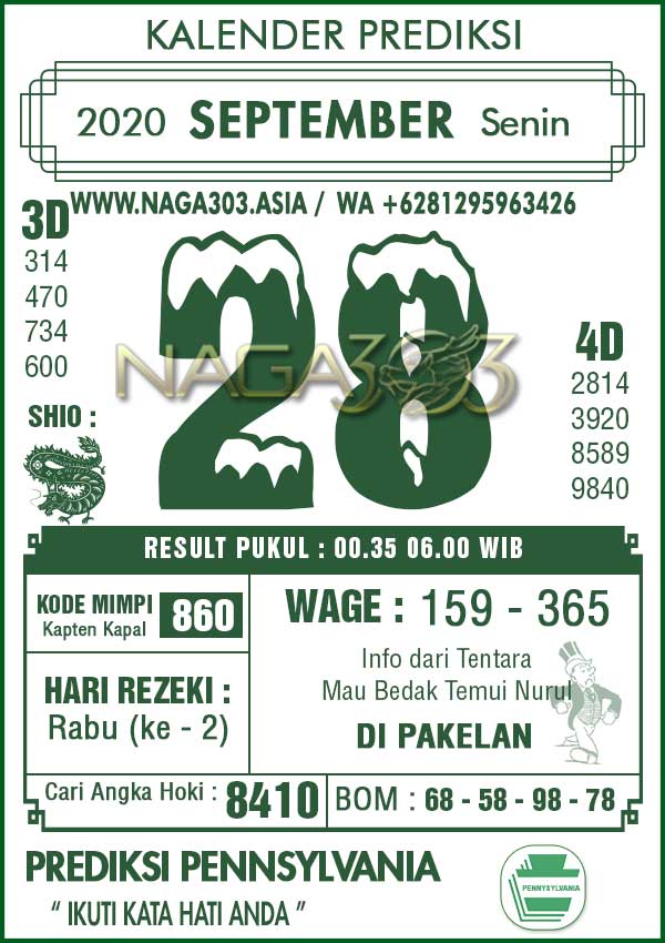 Prediksi Pennsylvania Pools Senin 28 September 2020