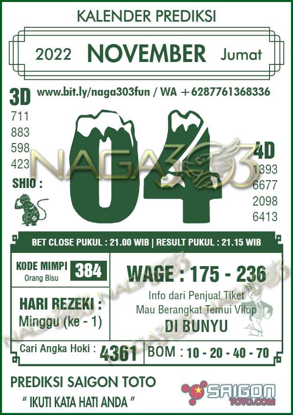 Prediksi Saigon Toto Jumat 04 November 2022 | Web Toto Naga303