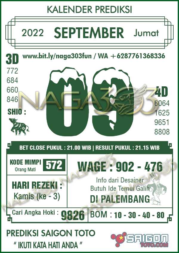 Prediksi Saigon Toto Jumat 09 September 2022 | Web Toto Naga303