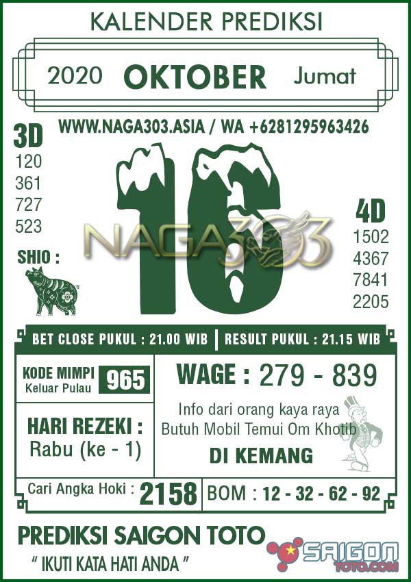 Prediksi Saigon Toto Jumat 16 Oktober 2020 | Web Toto Naga303