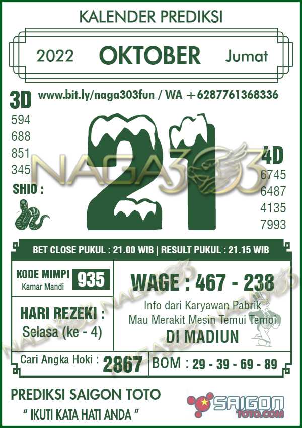 Prediksi Saigon Toto Jumat 21 Oktober 2022 | Web Toto Naga303