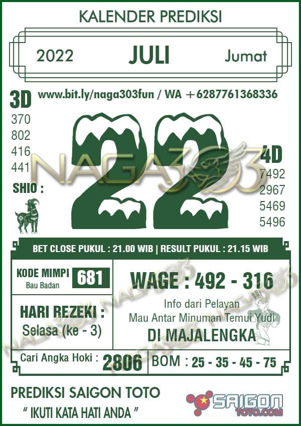 Prediksi Saigon Toto Jumat 22 Juli 2022 | Web Toto Naga303