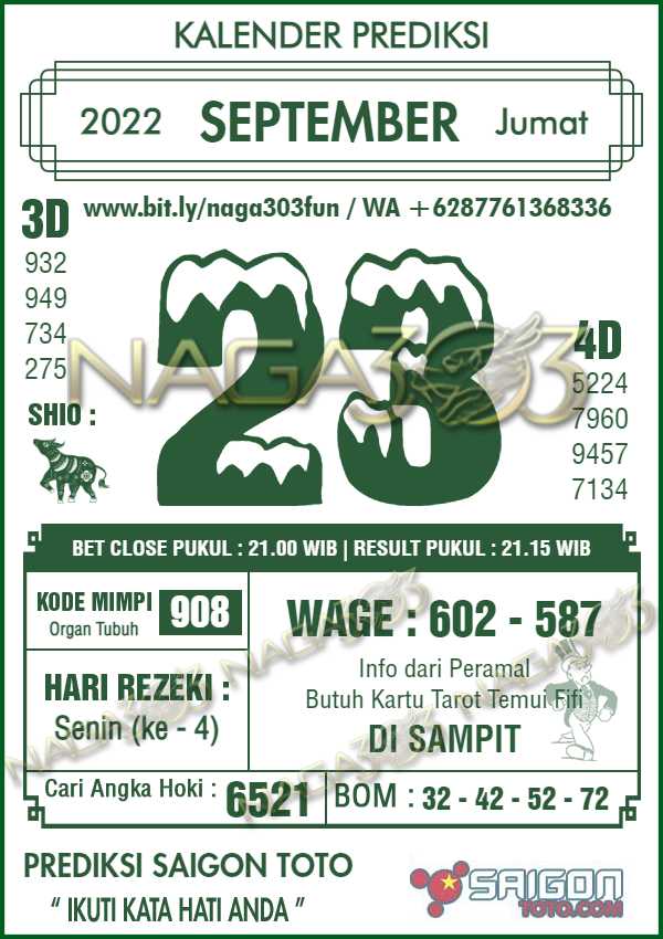 Prediksi Saigon Toto Jumat 23 September 2022
