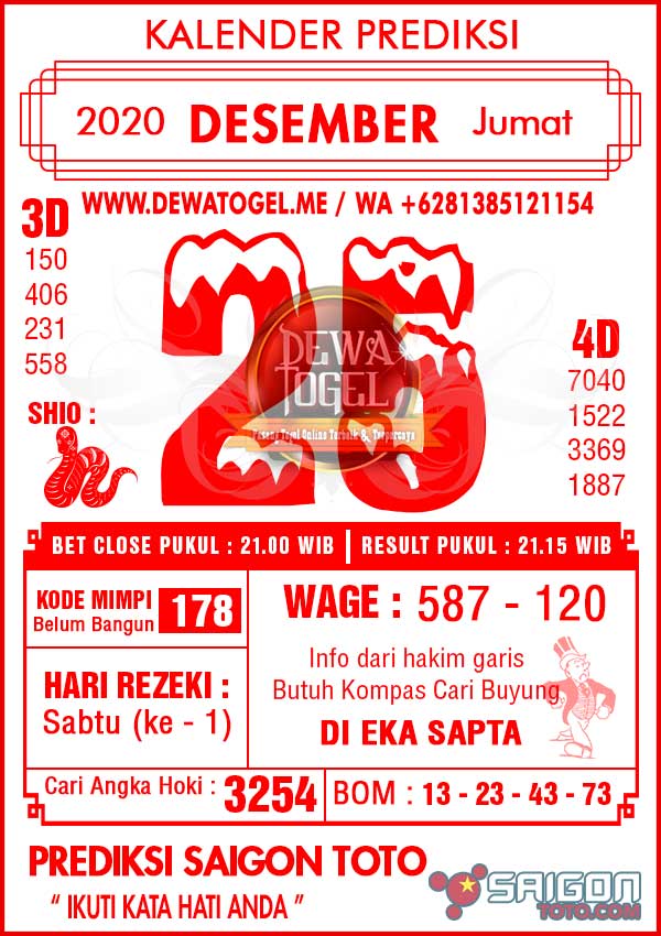 Prediksi Saigon Toto Jumat 25 Desember 2020