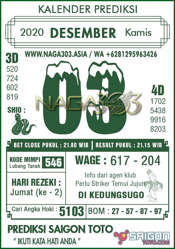 Prediksi Saigon Toto Kamis 03 Desember 2020 | Web Toto Naga303