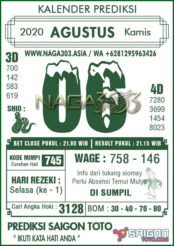 Prediksi Saigon Toto Kamis 06 Agustus 2020