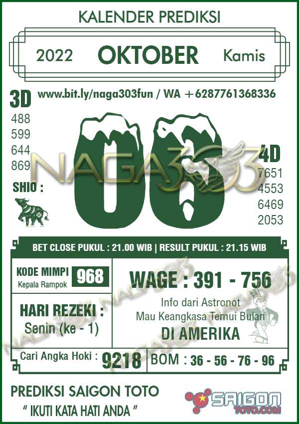 Prediksi Saigon Toto Kamis 06 Oktober 2022