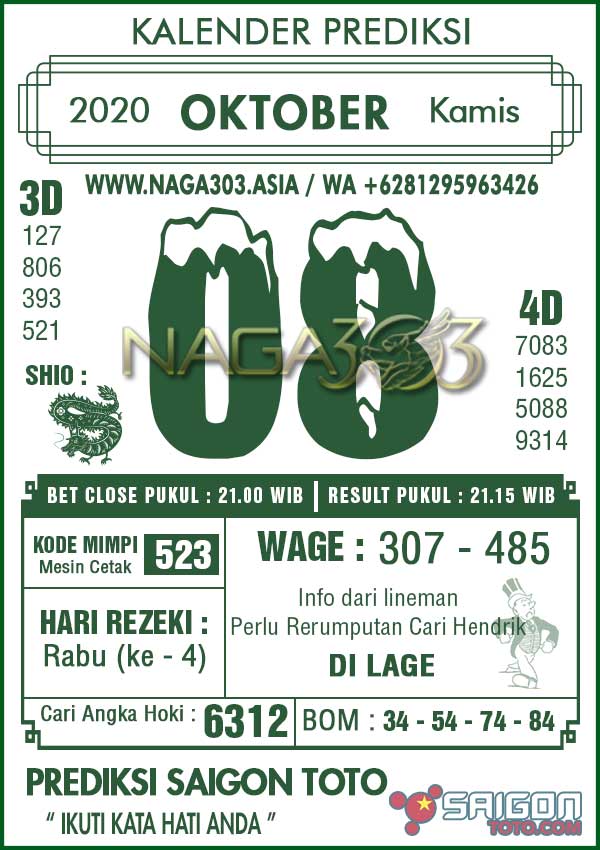 Prediksi Saigon Toto Kamis 08 Oktober 2020