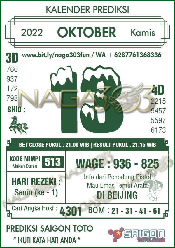 Prediksi Saigon Toto Kamis 13 Oktober 2022