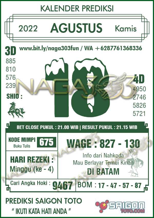 Prediksi Saigon Toto Kamis 18 Agustus 2022 | Web Toto Naga303