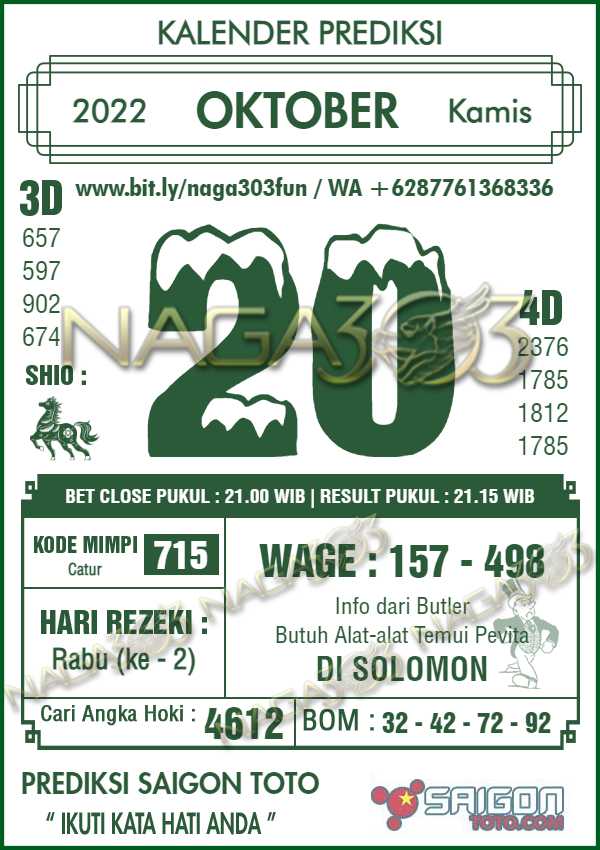 Prediksi Saigon Toto Kamis 20 Oktober 2022 | Web Toto Naga303