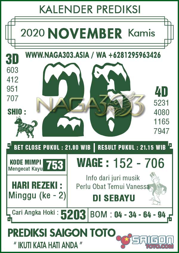 Prediksi Saigon Toto Kamis 26 November 2020