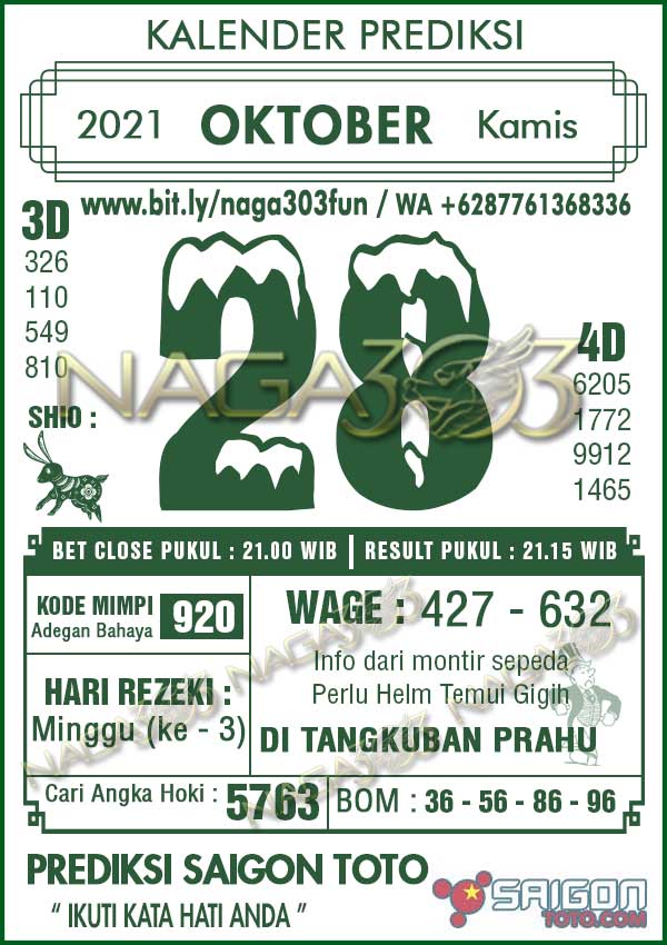 Prediksi Saigon Toto Kamis 28 Oktober 2021