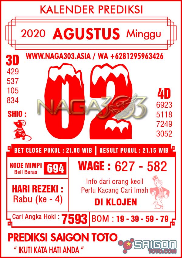 Prediksi Saigon Toto Minggu 02 Agustus 2020