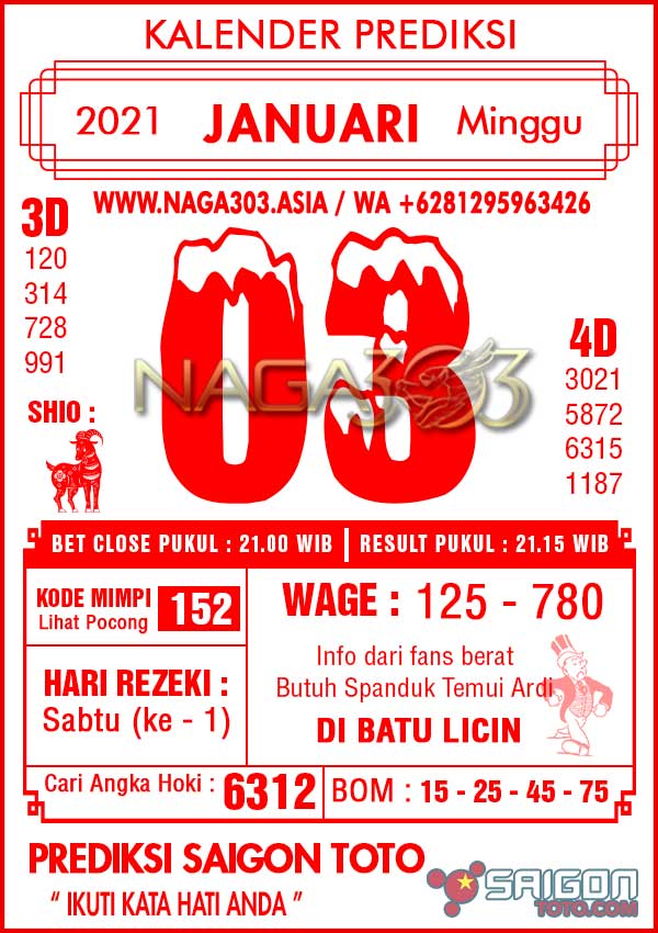Prediksi Saigon Toto Minggu 03 Januari 2021