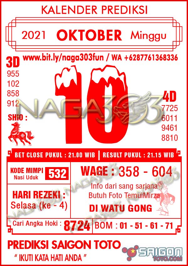 Prediksi Saigon Toto Minggu 10 Oktober 2021