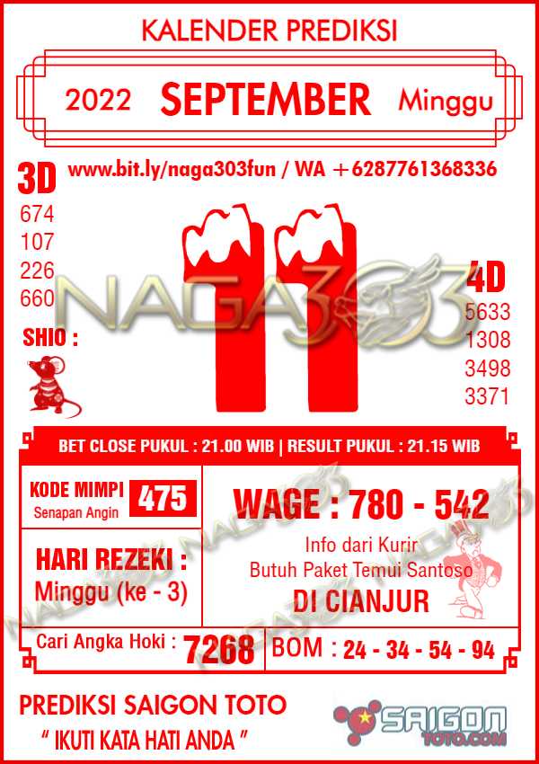 Prediksi Saigon Toto Minggu 11 September 2022