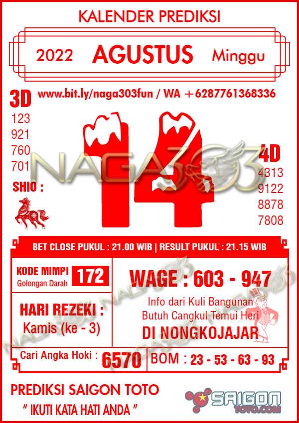 Prediksi Saigon Toto Minggu 14 Agustus 2022
