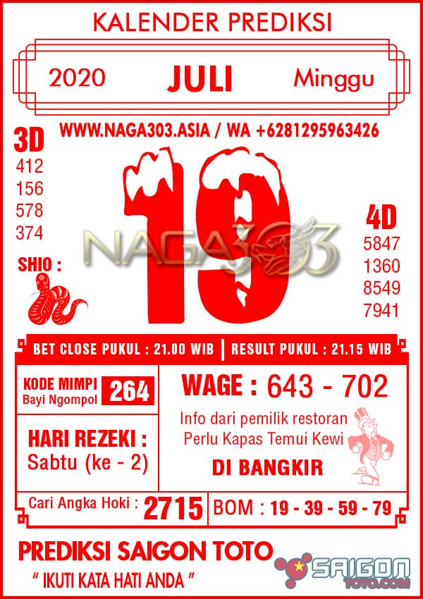 Prediksi Saigon Toto Minggu 19 Juli 2020