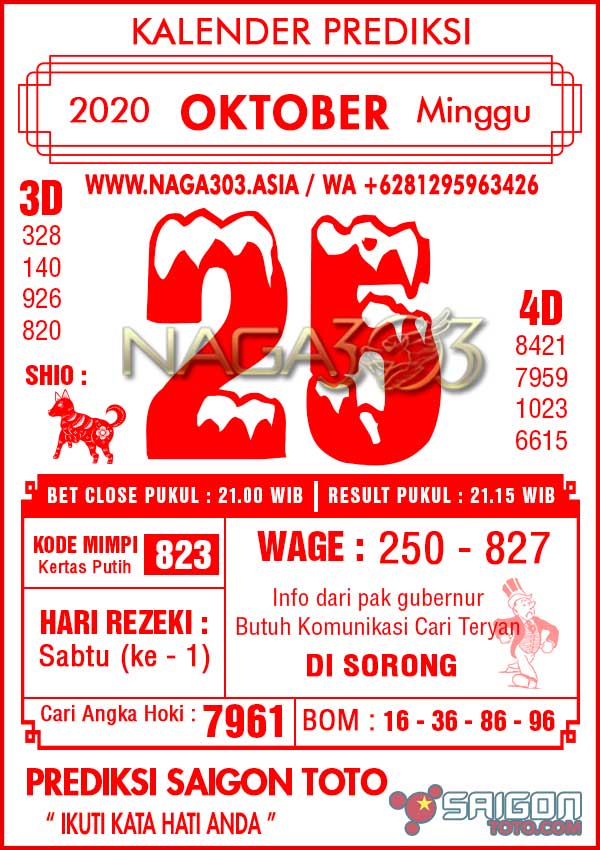 Prediksi Saigon Toto Minggu 25 Oktober 2020 | Web Toto Naga303