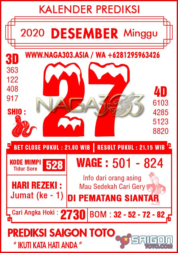 Prediksi Saigon Toto Minggu 27 Desember 2020 | Web Toto Naga303