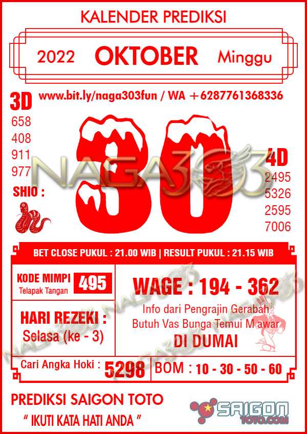 Prediksi Saigon Toto Minggu 30 Oktober 2022 | Web Toto Naga303