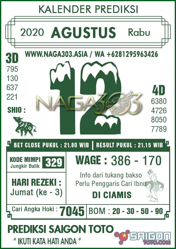 Prediksi Saigon Toto Rabu 12 Agustus 2020 | Web Toto Naga303