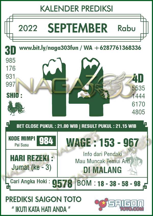 Prediksi Saigon Toto Rabu 14 September 2022 | Web Toto Naga303