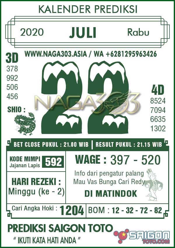 Prediksi Saigon Toto Rabu 22 Juli 2020
