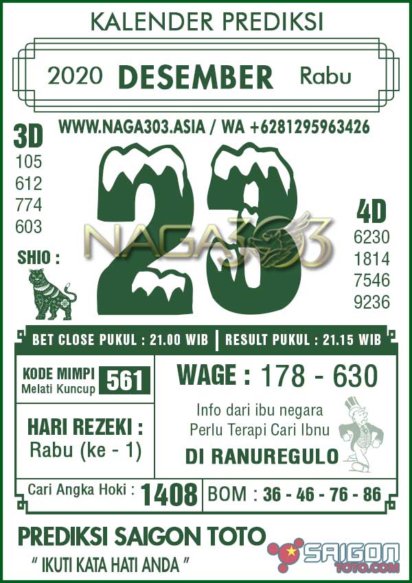 Prediksi Saigon Toto Rabu 23 Desember 2020 | Web Toto Naga303
