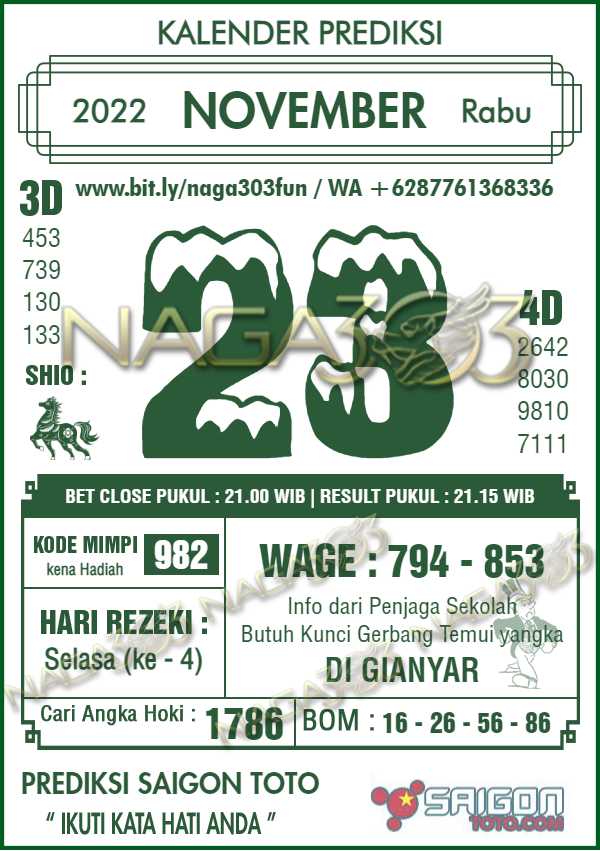 Prediksi Saigon Toto Rabu 23 November 2022 | Web Toto Naga303
