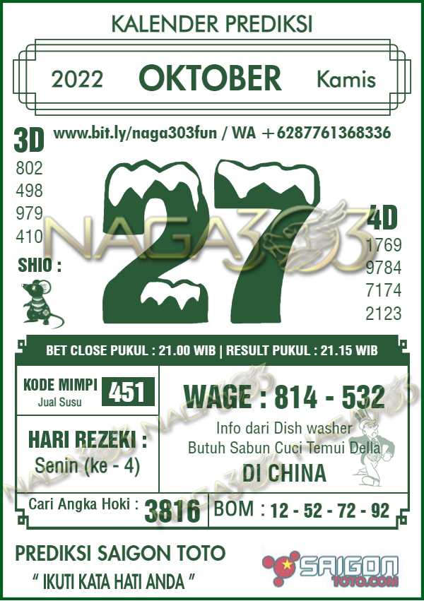 Prediksi Saigon Toto Rabu 27 Oktober 2022