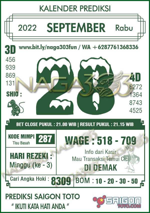 Prediksi Saigon Toto Rabu 28 September 2022 | Web Toto Naga303