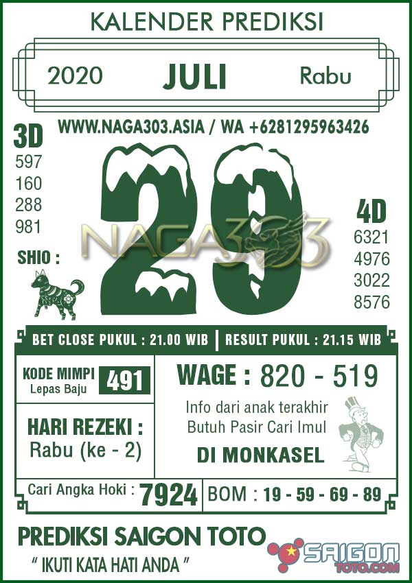 Prediksi Saigon Toto Rabu 29 Juli 2020 | Web Toto Naga303