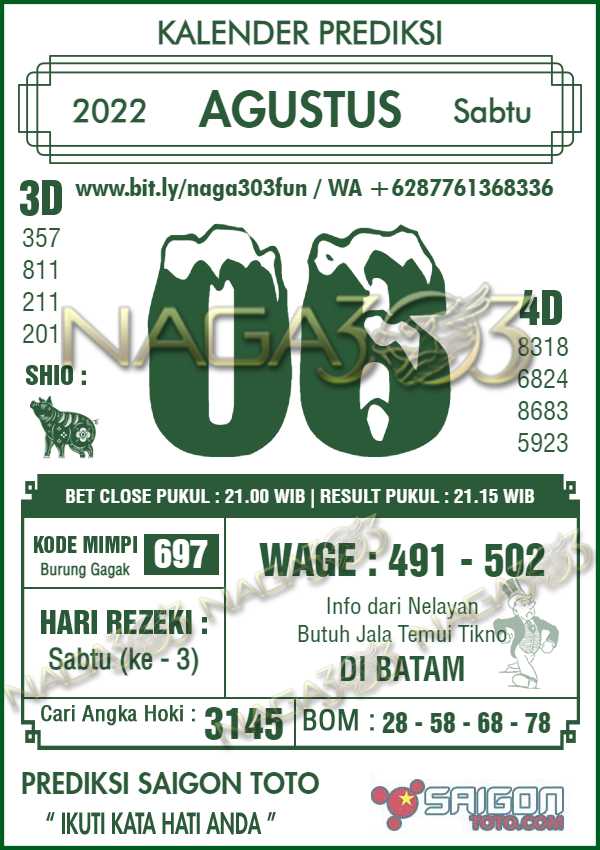 Prediksi Saigon Toto Sabtu 06 Agustus 2022