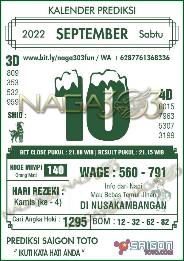 Prediksi Saigon Toto Sabtu 10 September 2022