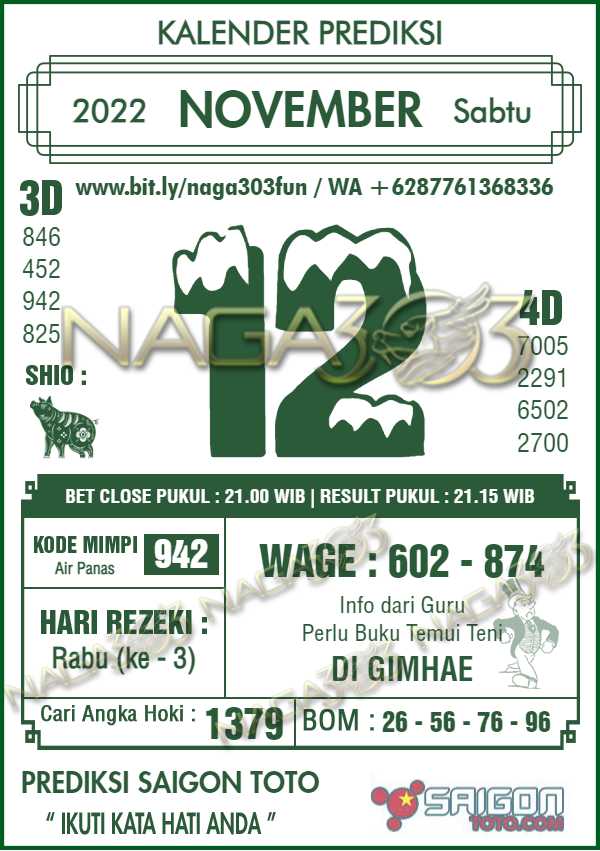 Prediksi Saigon Toto Sabtu 12 November 2022 | Web Toto Naga303