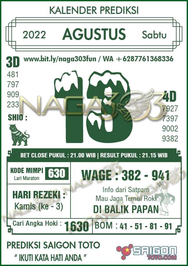 Prediksi Saigon Toto Sabtu 13 Agustus 2022