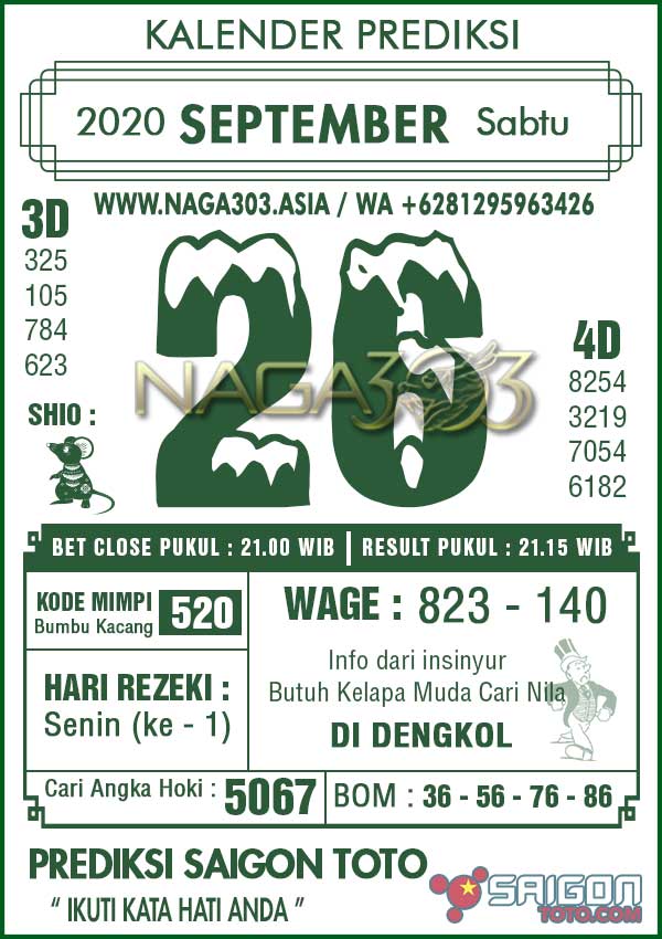 Prediksi Saigon Toto Sabtu 26 September 2020