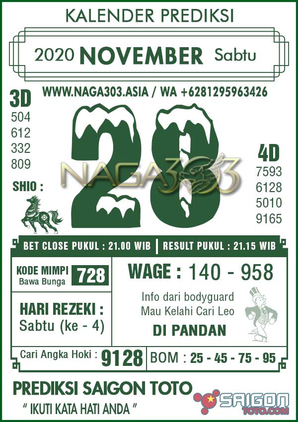 Prediksi Saigon Toto Sabtu 28 November 2020 | Web Toto Naga303