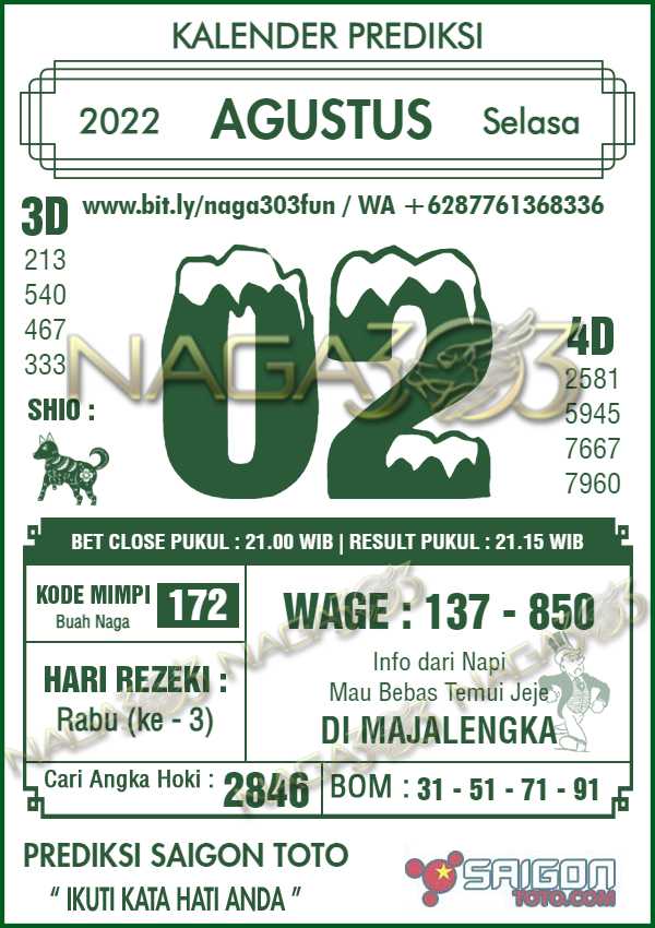 Prediksi Saigon Toto Selasa 02 Agustus 2022
