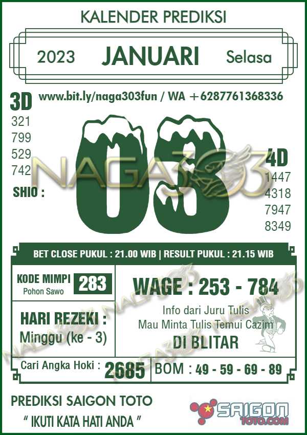 Prediksi Saigon Toto Selasa 03 Januari 2023 | Web Toto Naga303