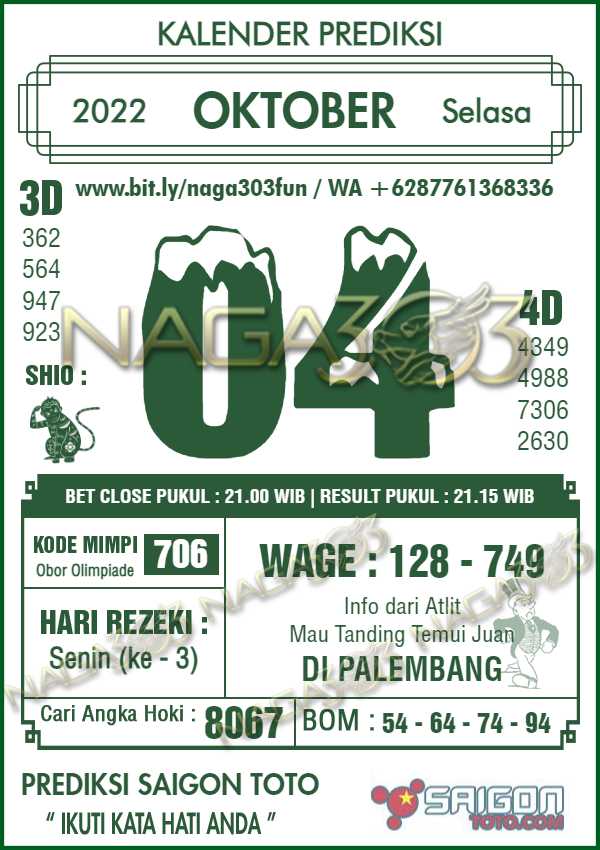 Prediksi Saigon Toto Selasa 04 Oktober 2022 | Web Toto Naga303