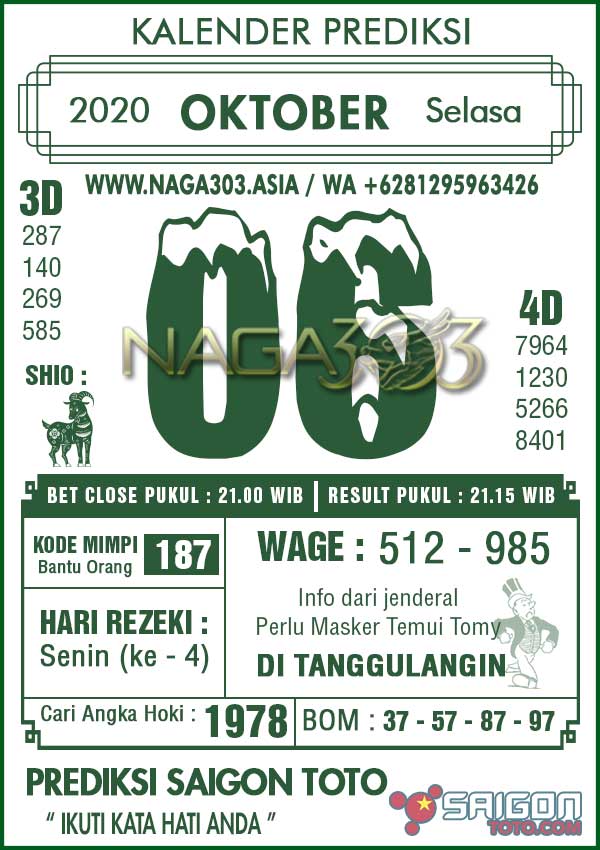 Prediksi Saigon Toto Selasa 06 Oktober 2020 | Web Toto Naga303