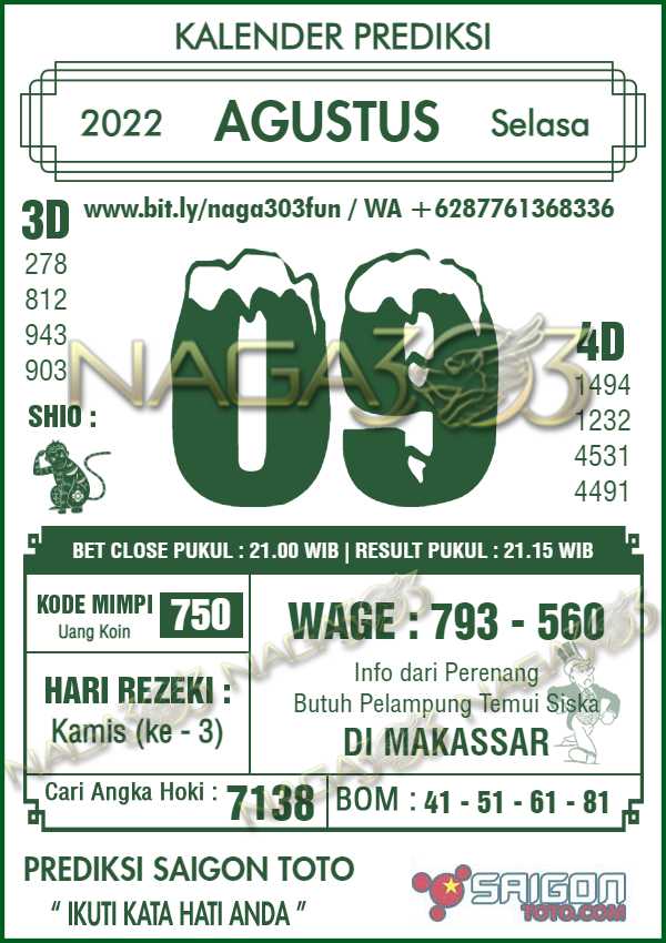 Prediksi Saigon Toto Selasa 09 Agustus 2022 | Web Toto Naga303