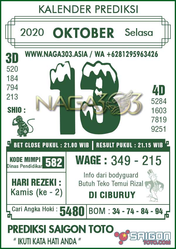 Prediksi Saigon Toto Selasa 13 Oktober 2020 | Web Toto Naga303