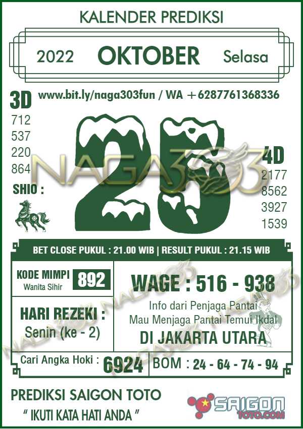 Prediksi Saigon Toto Selasa 25 Oktober 2022