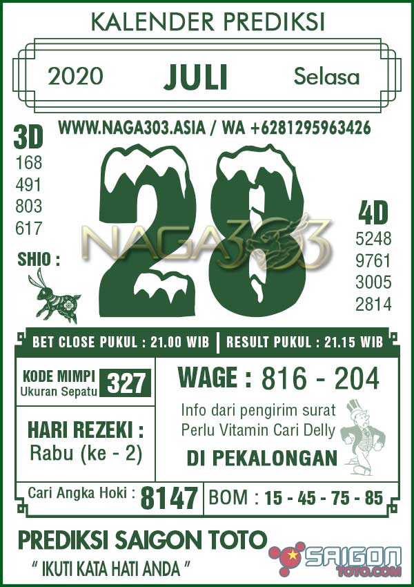 Prediksi Saigon Toto Selasa 28 Juli 2020
